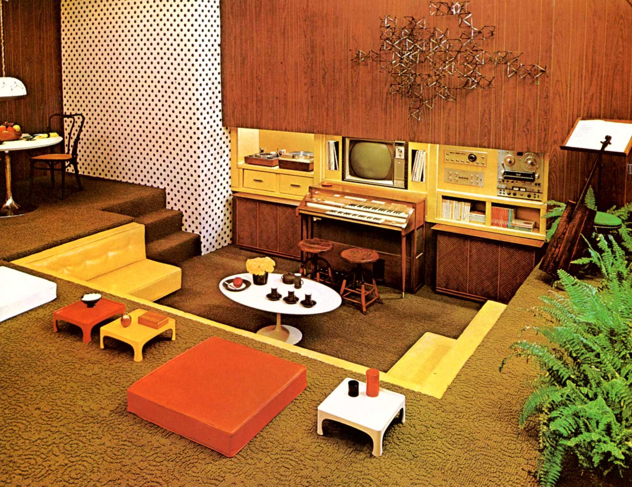In 1953, Jalk opened her own design studio. Side by side with these rather advanced experiments, Jalk developed many simple sets of furniture for manufacturers, including a high desk and stool, a set of shelves in Oregon pine and a series of chairs with upholstered seats and backs on a curved steel base. Her industrially produced furniture has clear, comfortable lines. The pieces are especially well suited for quick, straightforward production schedules. Economic in their use of materials, they soon became competitive, increasing Denmark’s international reputation for furniture design. Firms in the United States and Finland have manufactured some of her lines. The designs she developed for modern homes included a wall-mounted storage system (1961), a living-room set with a coffee table (1962), a “Watch and Listen” unit (1963) with compartments for a home entertainment system to house a stereo system, TV, records, tapes and speakers. Jalk also designed wallpaper and upholstery, for example for Unika Væv, and silverware for Georg Jensen.
